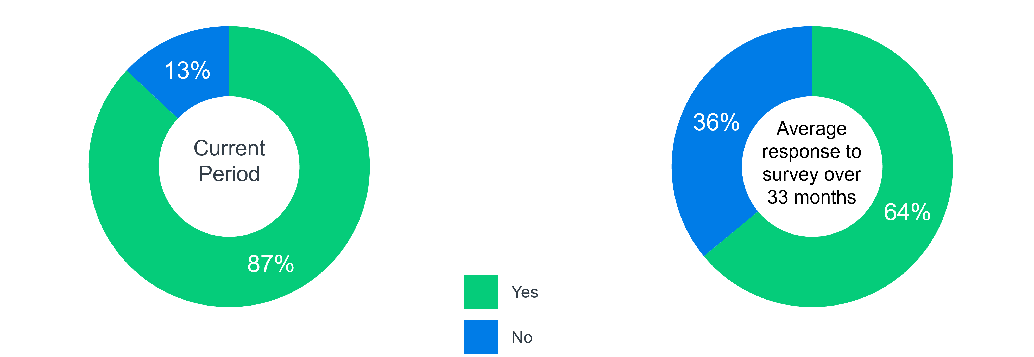 87% of enterprises surveyed in November 2022 indicated that they have been on the receiving end of a DDoS attack at some time, a 1% increase on the previous reporting period*.