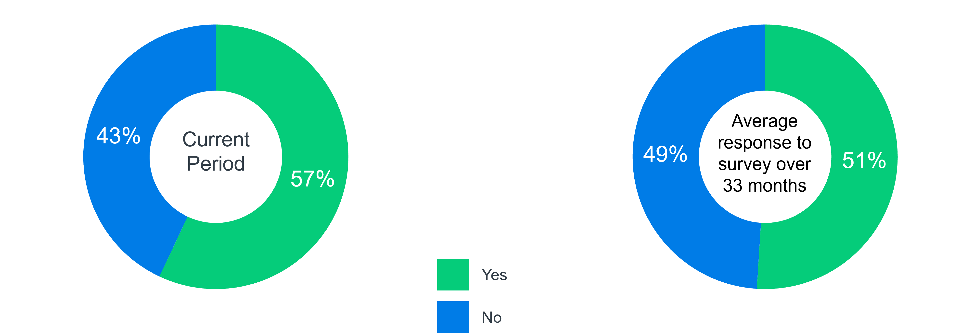 57% of enterprises surveyed in November 2022 outsource their DDoS mitigation, a 1% increase on the previous reporting period.