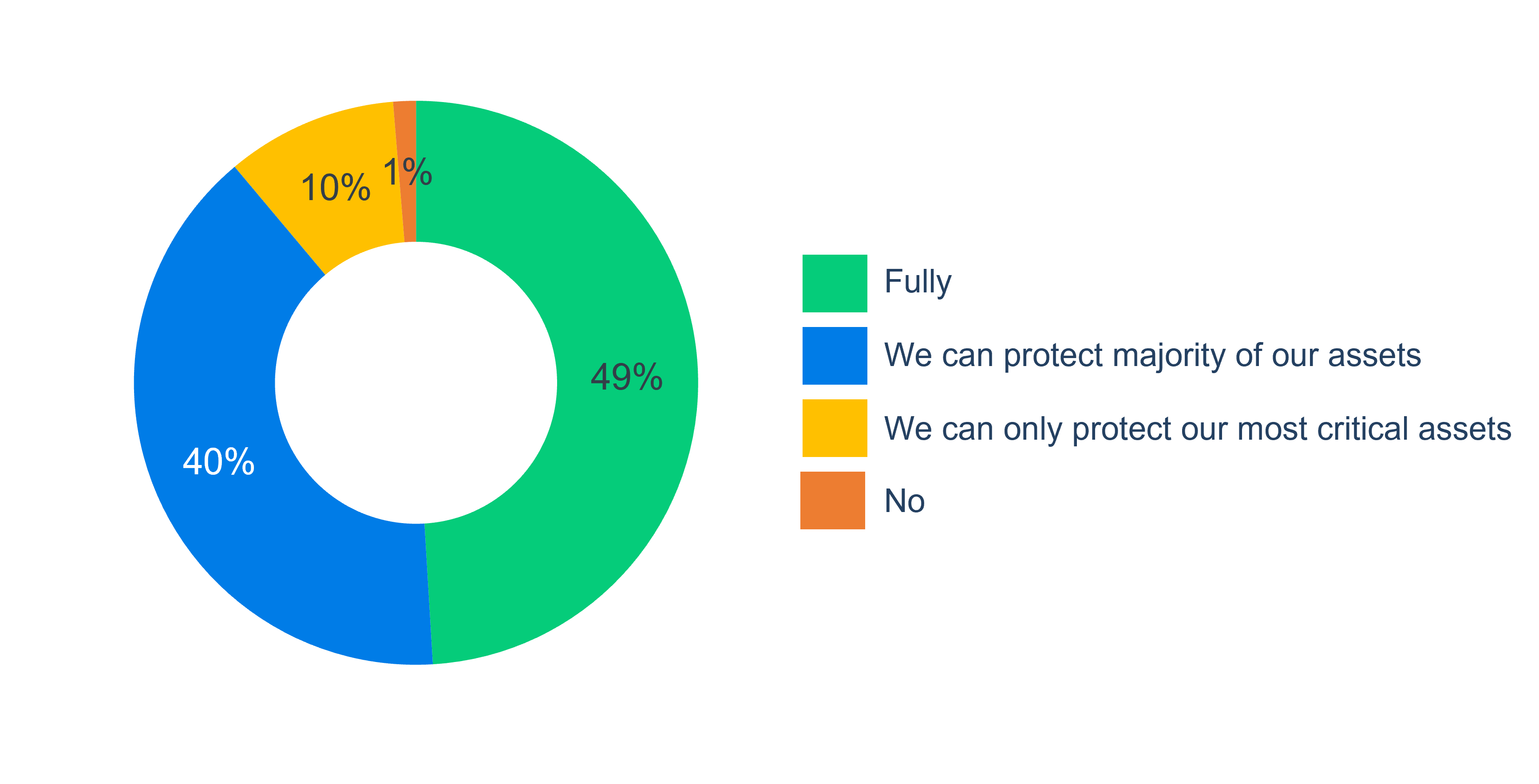 Only half (49%) of organizations have enough budget to fully meet their cybersecurity needs today, while 1 in 9 (11%) can, at best, only protect their most critical assets.