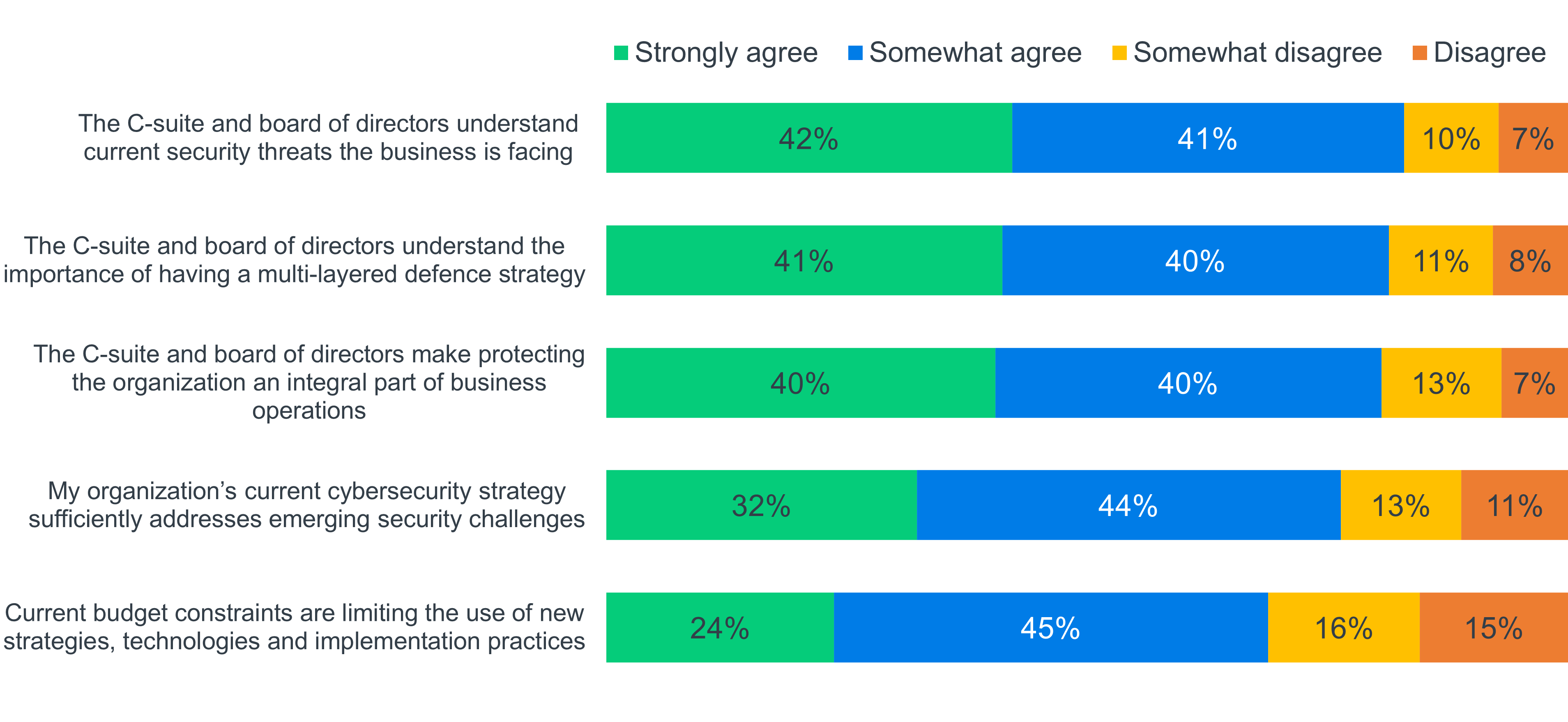 Whilst there is agreement that C-suite decision-makers understand the importance of defending against security threats, the majority (69%) are concerned about current budget constraints and their impact.